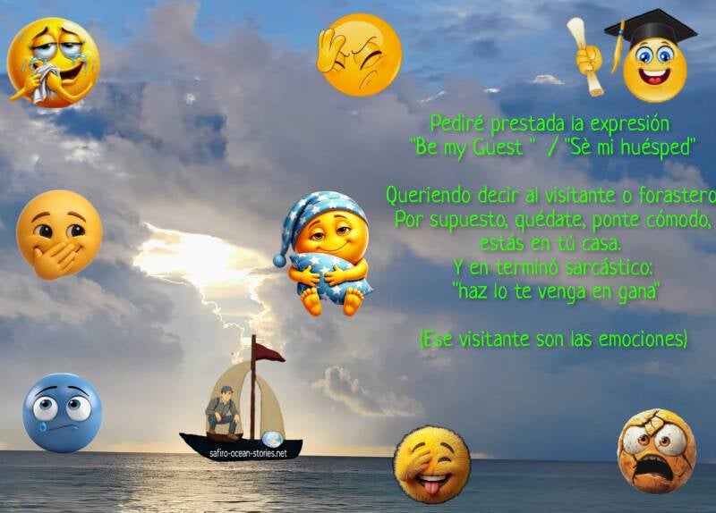 Para aclarar la llegada de una emoción a nuestras vidas; Rumi místico y poeta Sufi, nos dice que somos una casa de huéspedes; conciente o inconscientemente, a veces no analizamos una emoción dañina para nuestro organismo o nuestra vida social; permitiéndole entrar, posesionarse y hacer lo que le venga en gana.